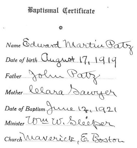 | Parents of Edward Martin Patz, Sr.: |