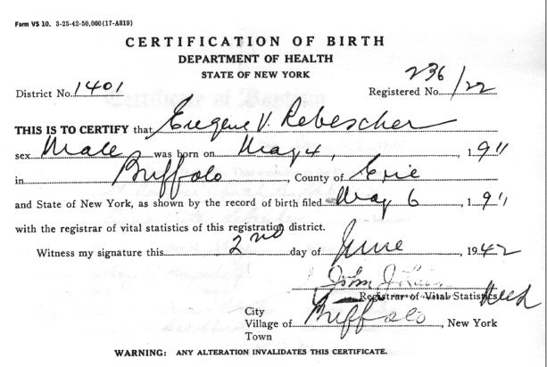 | Parents of Eugene Victor Rebescher: |