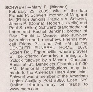 | Descendants of Francis Paul Schwert and Mary Frances (née Measer) Schwert : |