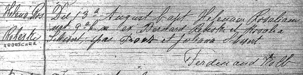 | Helen Rose Rebescher was born on August 9, 1899, in Buffalo, New York. She was baptized by Fr. Ferdinand Kolb of Saint Boniface R.C. Church, 124 Locust Street, Buffalo, on August 13, 1899. Her sponsors were Franz (= "Frank") and Julia (née Schlia / Schlee) Schwertfeger / Schwert.