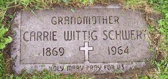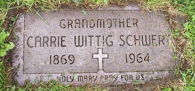 | Grave of Carrie Wittig-Schwert, Lot 339, Section I, Mount Calvary Cemetery (Pine Hill), Cheektowaga, NY.